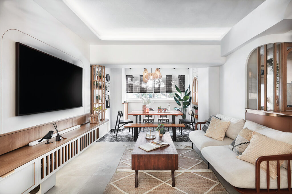Charmed by a Moroccan hotel she once came across online, the female homeowner of this home wanted to go with it as a point of inspiration for the maisonette she shares with her husband, three children and mother-in-law. “It came up during our design discussions,” shares Amanda Pang, Design Director of AMP Design Co., who helmed the renovation. “We then decided on a Moroccan inspired resort home, and kept it modern with clean lines punctuated with arches and curves to emphasise the Moroccan silhouette.”