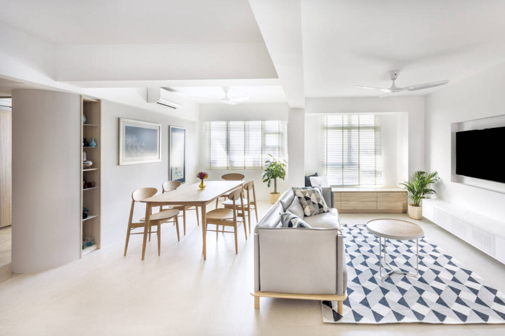 The couple (and their two teenage children) staying in this HDB BTO flat looked to clean-cut Japanese and Taiwanese apartments for inspiration when renovating their own home. To achieve a similar aesthetic, they engaged Artistroom to create a minimalist home with a neutral palette. The result is a home that exemplifies how minimalism can work in a local context.