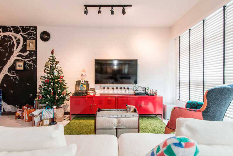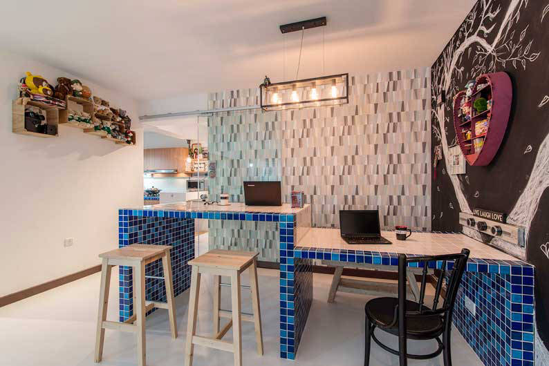 Nothing breathes life into a home quite like an explosion of colours. To help a pair of newlyweds with the renovation of their 4-room BTO flat at Fernvale Link, Atelier Concept went beyond the Scandinavian-inspired look and introduced lots of colours – zesty yellow walls for the gym room, blue mosaic tiles for the kitchen, and a delightful mish-mash of different coloured furniture and accessories for the living room. See rest of the home here.