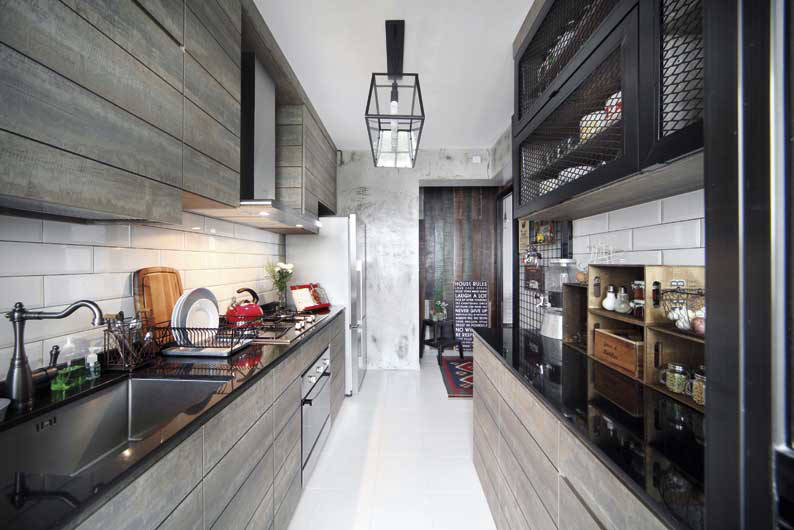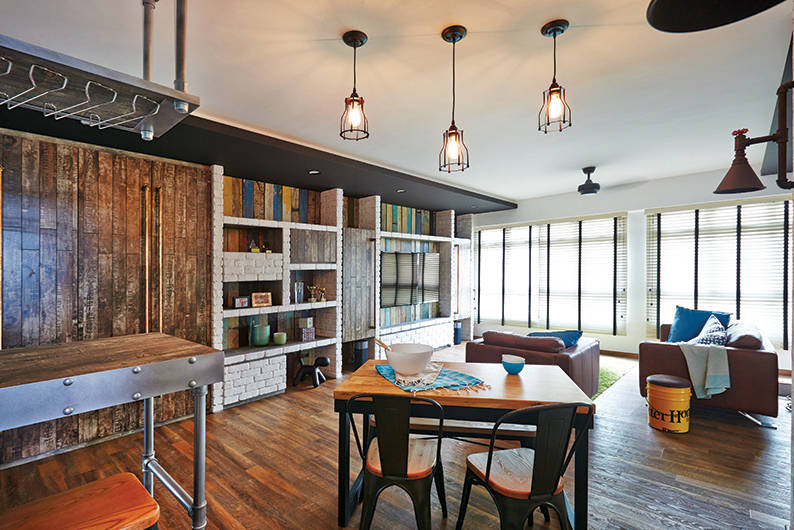 While there is a set of conventional rules that you can adhere by to achieve the Industrial look, feel free to throw caution to the wind and come up with your own interpretation of the design concept. This 4-room HDB flat – designed by Linear Space Concepts – combines the homeowners’ love of colours, patterns and vintage accessories to create a look that’s described as “Industrial kampong”. See the rest of the home here.