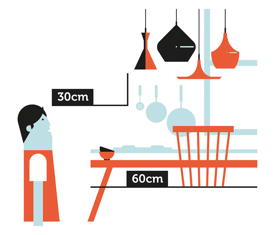 First consider the height of your ceiling when hanging up your lamp and then ensure that there is enough clearance space for the height of the people using that space. You should provide at least 30 cm clearance space for the person standing below. Hanging a pendant lamp too high up may not be aesthetically pleasing too. Plan for the lamp to cover up to 20 per cent of the ceiling height for the space to look balanced. If you have a rectangular table below the lamp, you may wish to install more hanging pendant lamps over the table.