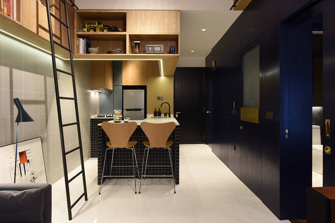About the project:  As space is tight, the designers maximised the entertainment space with the use of a sofa bed and loose furniture that can be easily moved around to reconfigure the space. A small pantry, built-in furniture and a selection of decor and fixtures were also integrated to provide comfort, functionality and aesthetics even in a compact apartment.