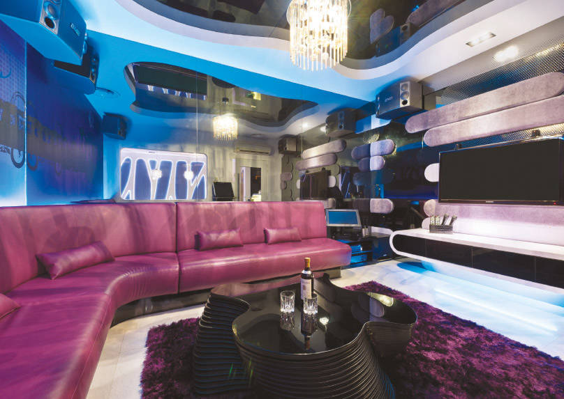 To transform this three-storey bungalow into the ultimate club-inspired haven, Space Vision Design installed LED lighting that’s responsible for the sensual purple hue cast upon the living room area. To further add a sense of dynamism to the space, the entertainment area was embellished with extravagant sofas boasting purple leather upholstery, and a pool table was even brought into the dedicated playroom. See the rest of the home here.