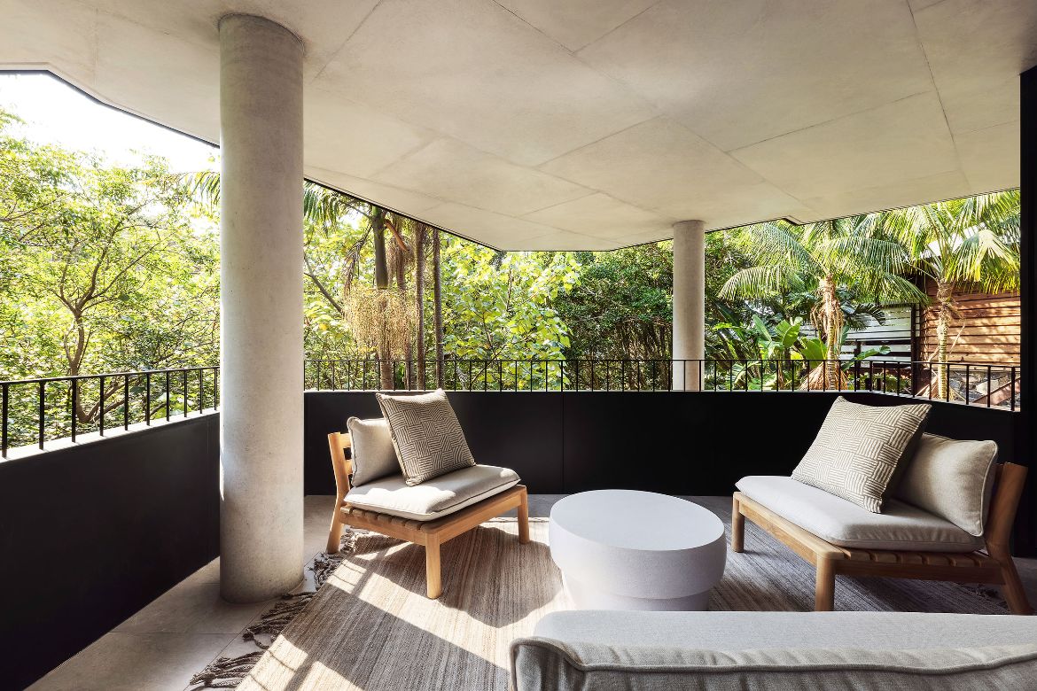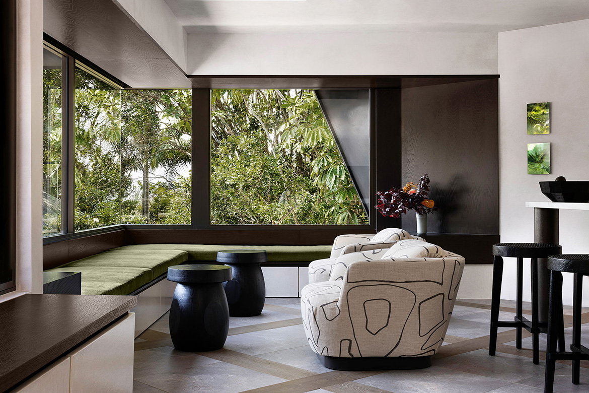 The homes, which were completed in October 2023, are now an idyllic retreat for vacationers as well as Emma’s UK family whenever they visit. With a spectrum of blues and greens, curving forms and an artistic language that mimics the dense foliage outside, Skillman and team have created spaces that celebrate place with a seamless indoor-outdoor connection.