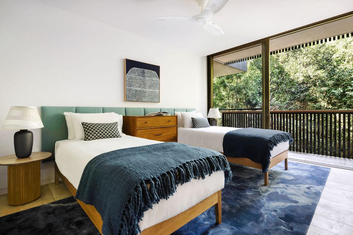 In Byron Bay, designer Piper Skillman has curated two vacation homes in a pair of dwellings designed by Harley Graham Architecture, mirroring the lush landscape beyond.