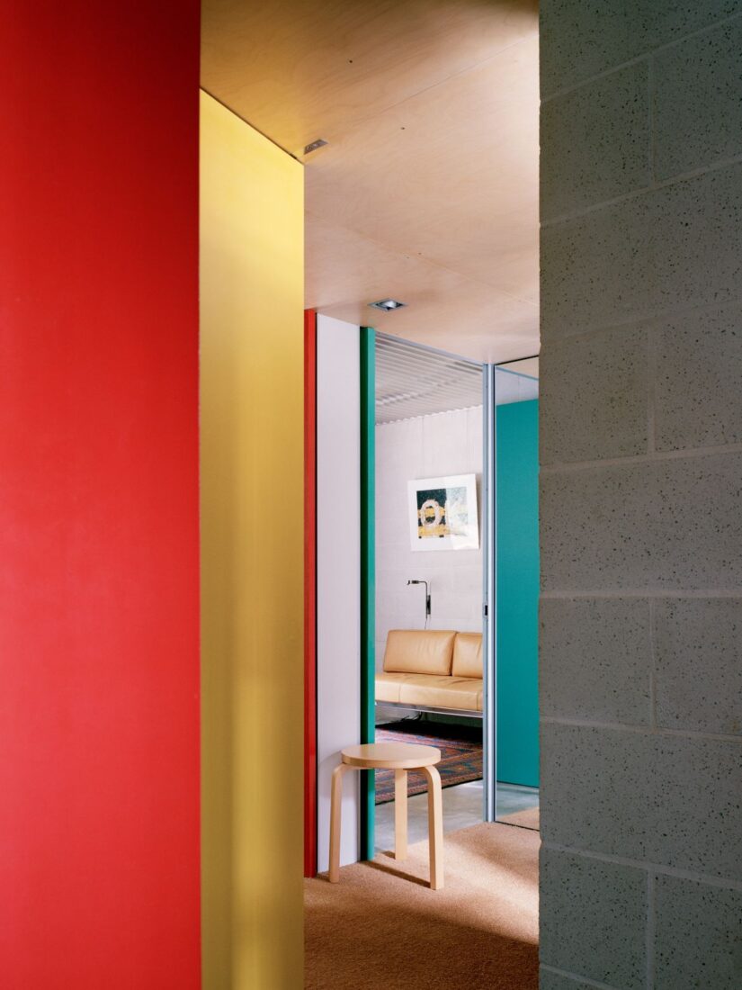 Interestingly, Langston-Jones explains how these and other material choices were part of a rigorous design process that led to the presence of such excitingly bold bursts of colour. It wouldn’t be a stretch to call the project modernist in inspiration, with the architect explaining that structural honesty was a key driving concept. Far from using colour frivolously, the strong choices are a response to the honest, robust materials in a Vitruvian effort to balance legibility, integrity and joy.