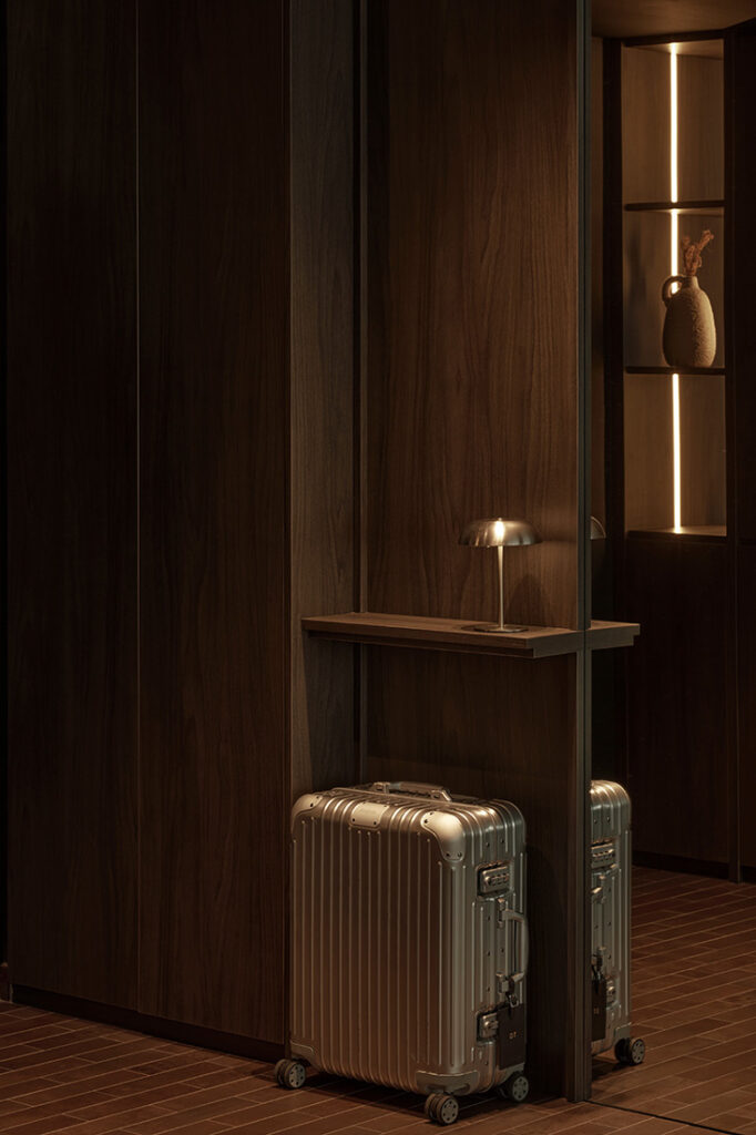 What emerges is a flat that embraces shadow, texture and a cinematic sense of stillness. The living room distils this intimacy beautifully. Instead of hiding their luggage — the very objects that shaped their everyday lives — the couple wanted them visible. “We don’t wish to tuck the luggage away,” they told Ryan. “They’re part of us.” And so Ryan turned the matching suitcases into side tables, filled with meaning and memory. The move could have veered gimmicky in less thoughtful hands; here, it becomes the emotional spine of the home. “More than a design statement, it’s a nod to how they met, and a reminder of the shared rhythm of their lives,” Ryan adds.