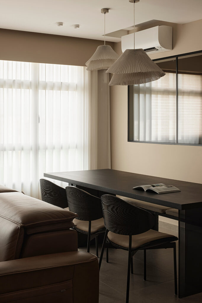 Embracing a moody and minimalist style, this HDB BTO flat by Darwin Interior is a true sanctuary for a couple who loves to stay home.