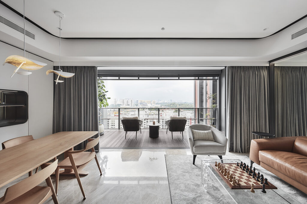 For Lawrence Puah, founder and design director of akiHAUS Design Studio, the home’s transformation began right at the point of arrival. At this JadeScape condominium, the private lift lobby was initially cramped and poorly resolved, with a swing door that opened directly into the unit, limiting both movement and airflow. “When you open the door, there’s really no way to move around comfortably,” Lawrence explains.