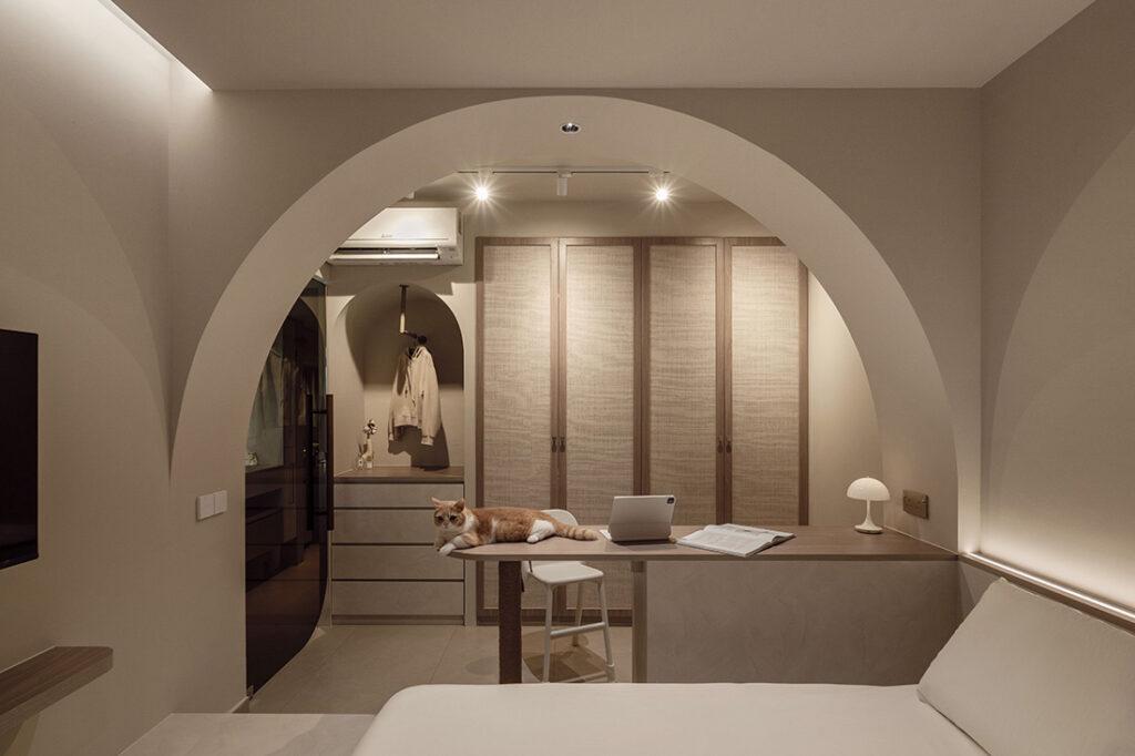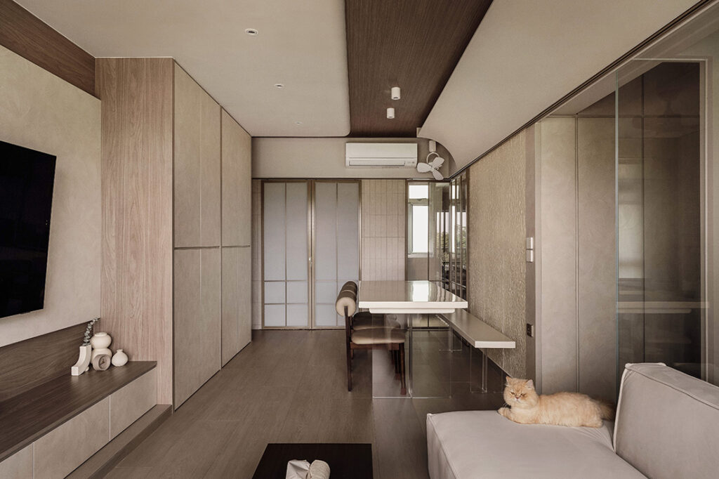 For a young couple in Yishun, Darwin Interior delivered a renovation anchored on sanctuary. “This four-room BTO was designed as a safe haven for every member of the family — including their two beloved cats,” says the team, pointing to reworked planning, concealed storage and custom cat doors that make daily life seamless.
