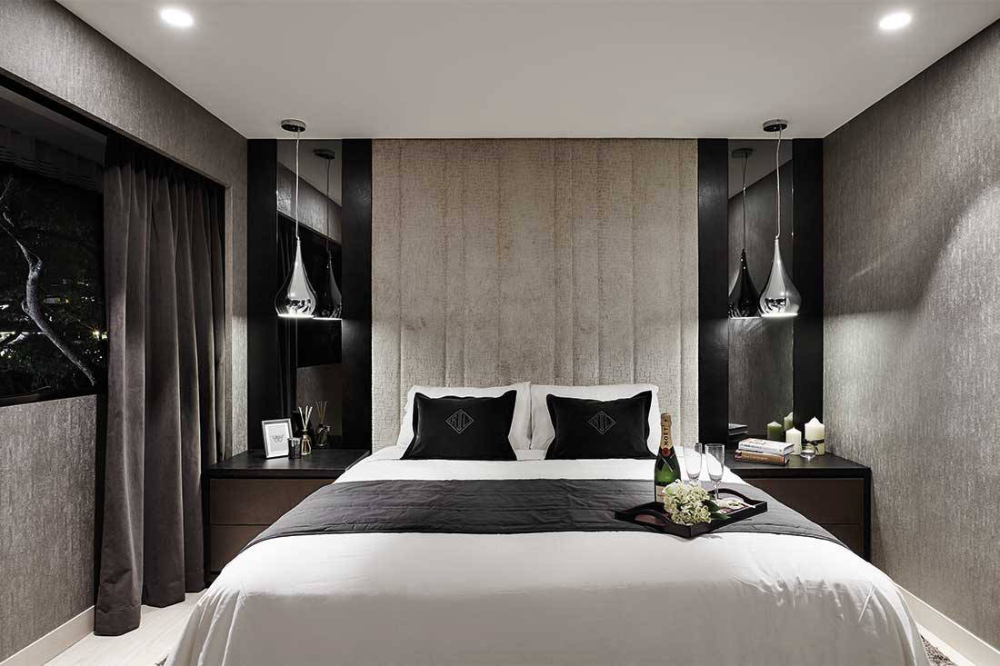 The master bedroom has been designed with a hotel look and feel, and comes with nifty side tables that slide out to reveal the switches.