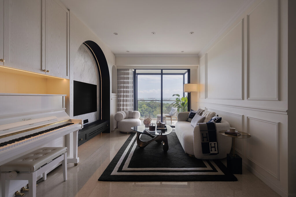 A married couple in the healthcare sector found their ideal home in an East Coast condominium with a breathtaking seaside view. With a design vision rooted in French elegance, they entrusted Principal Designer Kalyn Guo from Home Journal to transform the resale unit into a refined yet functional sanctuary.