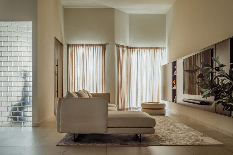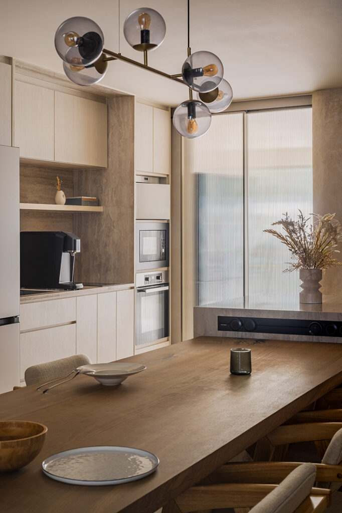 Material choices underscore this sense of restraint. Neutral tones form the foundation, layered with natural finishes that add warmth without overwhelming the space. It’s an interior that feels composed and tactile, revealing itself gradually over time.