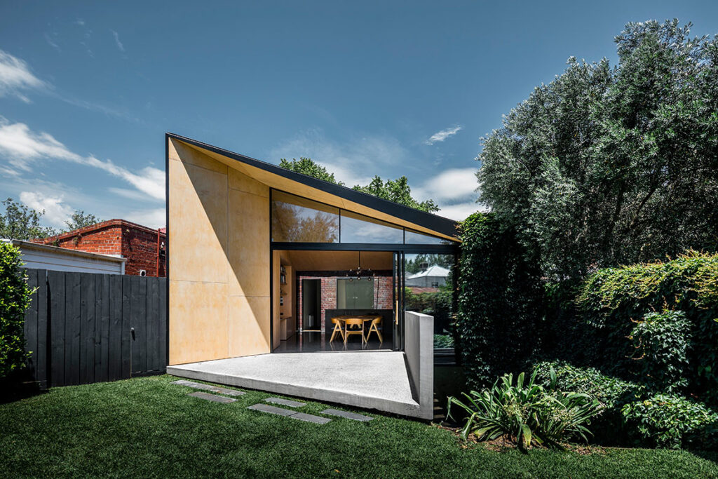 “With the addition designed as a respectful but playful counterpoint to an existing heritage home, the junction between old and new is treated as an unequivocal transition point in the building and the two appear not to touch,” Murfett adds.