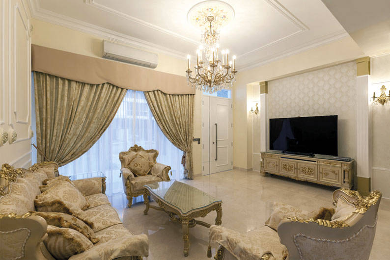 The owners of this landed home wanted their dream home to be a visual throwback to the regal Victorian era. The classic European look was achieved with the help of design firm Add Space, who crafted the look with immaculate attention to detail. Panelled walls, ornate chandeliers, Victorian-styled wallpaper and carefully considered furniture picks all come together in this royal home.
