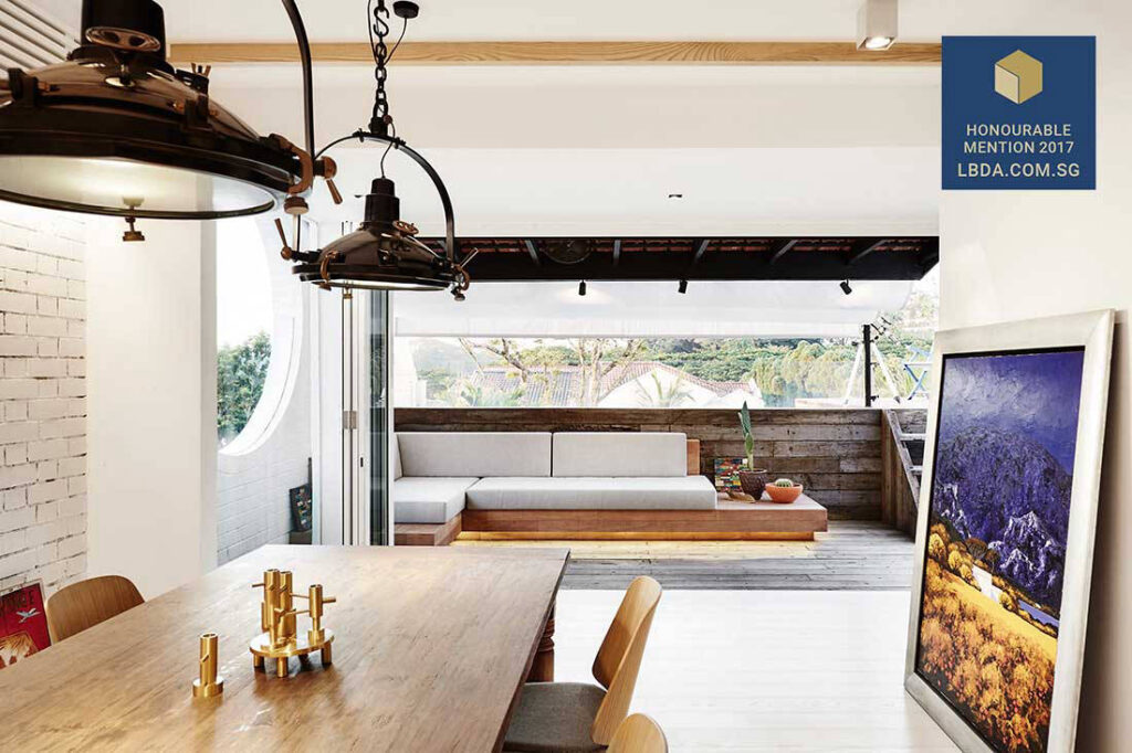 The owner’s memories of his childhood greatly influenced the design of this home, which design firm UPSTAIRS_ affectionately calls the White Brick House. According to designer Dennis Cheok, the homeowner desired a material palette reminiscent of a country house’s open spaces, whitewashed timber and raw bricks. The designer emphasises however, “We were also immensely mindful that the end result must be modernised and made relevant to the current place and time; it would be quite easy to produce a ‘theme park’ fantasy.”