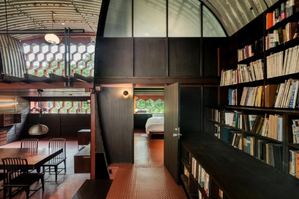 Selected for documentation by docomomo Japan, monotrum were approached to convert the house into a hotel by Food Forest. monotrum were not interested in the usual strip back and rebuild approach. Instead, their philosophy posits an approach of considered respect: “We aim to increase the use-value of a building by observing its existing condition” says Nobuhiko Kitazato, monotrum architect and founder with Takuya Ishii. In updating the project’s functionality, the peculiar architecture and unique materiality made the project particularly intriguing for the practice. “It presented many details not commonly found in buildings constructed using conventional methods. The process of uncovering new ways to utilise them was an immensely exciting experience,” says Kitazato.