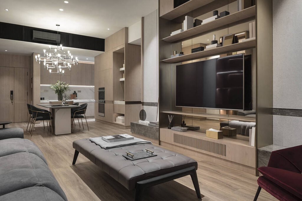 When Parenthesis was approached to design a weekend home for a lovely couple, the firm envisioned an open plan dwelling that capitalised on light and space to create a contemporary and uncluttered look. To achieve a sense of openness, Sujono Lim of Parenthesis decided to visually unify the public spaces of the apartment – the living room, dining room and kitchen – through the use of a consistent colour palette and limited range of complementary materials. A continuation of materials from one zone to another reinforces connectivity, blurring the boundaries between different spaces and facilitating seamless movement in the apartment.