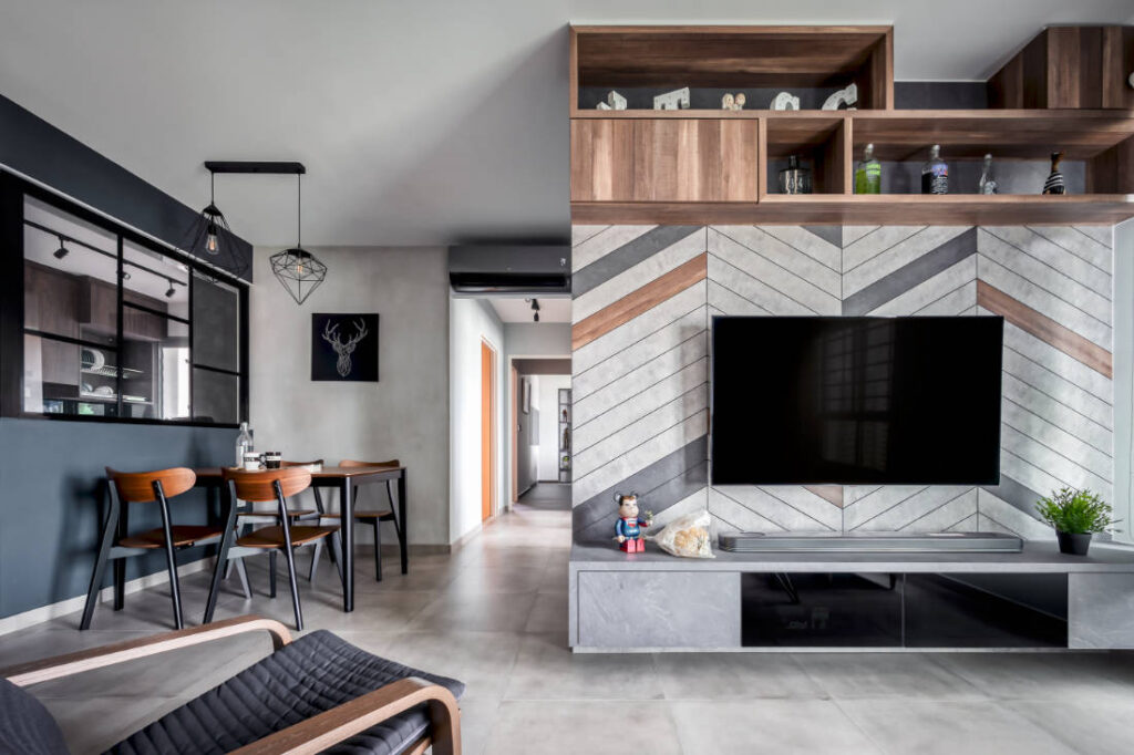 The functional aspect of a design is equally, if not, more important than the space planning and design aesthetic. This is the reason why the shoe storage at the front entrance doubles as seating, making it convenient to put on and remove footwear. The full-length mirror also makes a great addition to the space for last-minute touch-ups and to reflect more light into this otherwise dark space.