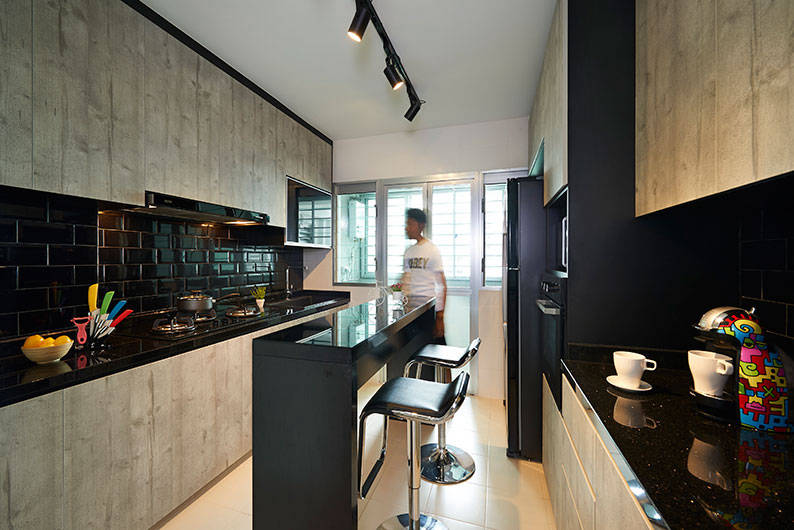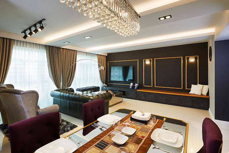 This 5-room HDB flat exudes glamour and sophistication, thanks to the expert team from AC Vision Design. In fact, this BTO flat has an unusual blend of design styles, including nature-centric Scandinavian and the romanticism of a modern Victorian look. But what gives this home is unique identity is the luxurious interplay of black and gold.
