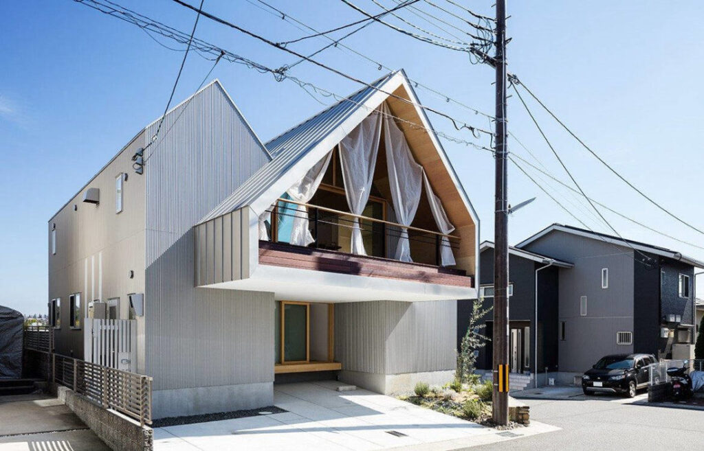 They reached out to architects Kohei Yukawa and Hiroto Kawaguchi, who collaborated on the design of the house by taking into account the couple’s need for privacy, as well as creating open spaces that would be able to foster interaction between family members as they commune with nature. The house itself is a metaphor for the distant mountain range, with its basic roofline comprising three singular ‘mountains’, bound together as one, paying homage to the view. The heart of the house is divided into three, and the architects call it “everyone’s house”. Within it is a hall that allows for a continuous flow of activities. Much like a welcoming courtyard, the space feels open and light as one steps through its entrance. Inclined wooden ceilings and various elevations throughout create an airy space in which light reflects and bounces off unexpected nooks and corners. The warmth of this double-volume hall is enriched by wooden decking and panels that flow seamlessly from floor to roof. Elegant and flexible, the space can be transformed according to the function and needs of the family. Fluid elevational elements are peppered throughout spaces contained within Everyone’s House. Apart from separating spaces, these clever details are also used as chairs, tables and storage areas. It’s these daily interactions interspersed with light, wind and a sense of distance that create rich experiences for the homeowners. The open nature of Everyone’s House is in stark contrast to other houses in the vicinity that are more private and modest – guarded, almost – with a streetscape surrounded by walls and the occasional peppering of small, tight windows throughout. The house looks almost exotic – out of place and yet not so – with large framed wooden windows that let a generous amount of light in. It offers the family an unhindered view of verdant mountain ridges towards the back of the house while maintaining a relaxed, open facade that faces the street. With its outstanding features, the house still resonates with the neighbourhood – privacy is maintained through asymmetrical solid structures flanking the giant wooden windows in a show of community solidarity. Private and working areas are arranged to the fringe of the house, as such they frame and support the hall, which is considered a public area. The master bedroom and children’s bedroom are located opposite each other, separated by the hall which also acts as a bridge between them. The second floor is reserved for the kitchen, living and dining area that opens up to a balcony. This mezzanine-like space takes full advantage of the open plan of the house, offering views that extend as far as the eye can see. The house is an allegory. It cocoons the family in its warmth while basking in the presence of surrounding hills. With these various overlapping themes, the architects reinterpret a house, its people, the town and landscape through reconstruction of space to create a relationship which would bring meaning to a family. Through the house, they are one and home.