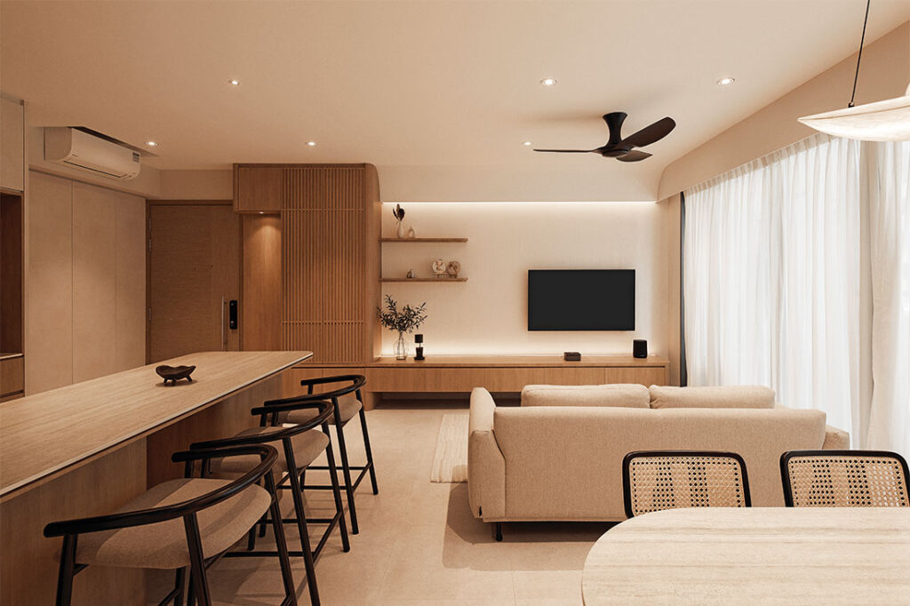 The homeowners are a married couple in their 40s who work in creative industries, and who prioritise family time with their kids. Ryan Linardy, Lead Designer at Intheory Design says: “They desired a spacious and uncluttered home that was both stylish and kid-friendly – a serene retreat where they could unwind, read, enjoy quiet moments, and bond.”