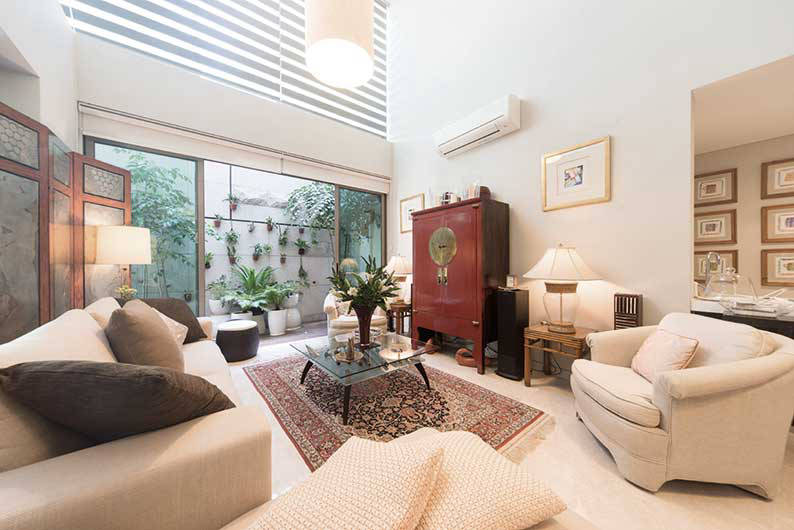 In a home for art-lovers, it’s important for the designers to dedicate space for the owners to display their collection of photographs. This corner of the corridor has been turned into a focal point, with pictures and paintings bringing visual interest to a small dresser.