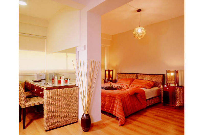 Wooden parquet floors instantly bring to mind the tropical resort look, and this is further accentuated by the rattan-woven furniture that is found throughout the home.