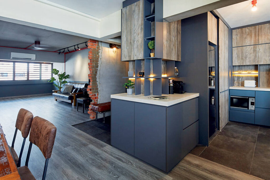 Occupied by a young family who is unafraid to try new things, the standout feature of this flat is an unfinished, one of a kind red brick wall. “They wanted something that is different – not the industrial look that we always see. They wanted every angle of the flat to tell a story,” designer Young Tay says of the homeowners’ brief.