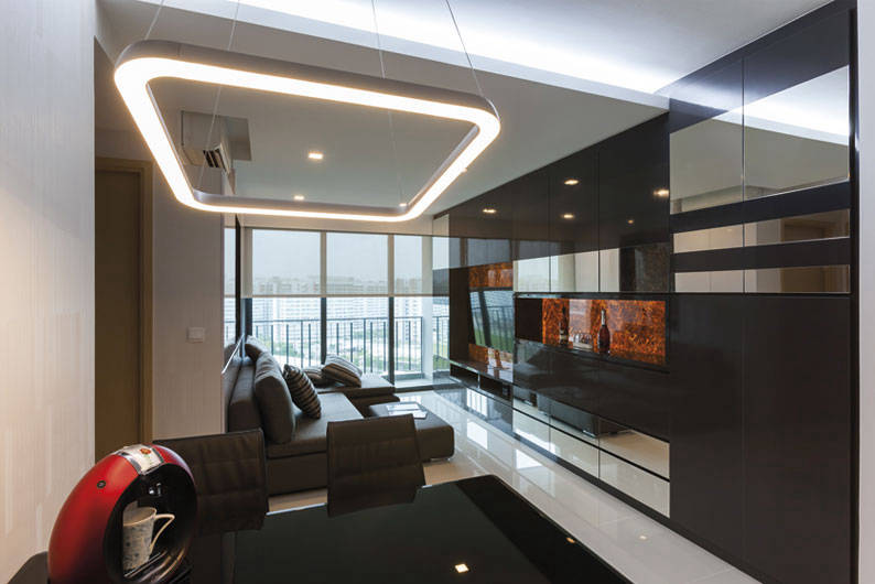 Although the floor space is tight in this 2-bedroom condominium apartment, the designers from Add Space managed to make the most of it. A clean, black-and-white colour scheme comes together in a succinct manner and manages to highlight the apartment’s modern stylings. The living for example, boasts features and materials that lend to the illusion of space. There are glossy laminates on the wall shelves, mirrored surfaces as accents and a polished floor for a sleek feel. These design elements carry through into the other rooms, creating a cohesive home that the owners are proud of.