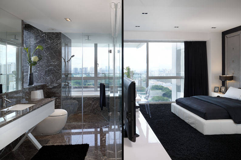 The homeowners designed this 4-bedroom apartment at SKY 11 condominium with a clean, black-and-white colour scheme that appeals to the entire family. Interior design firm Unimax Creative took it a step further during the home renovation, by including unique design elements that would catch the eye of visiting guests.