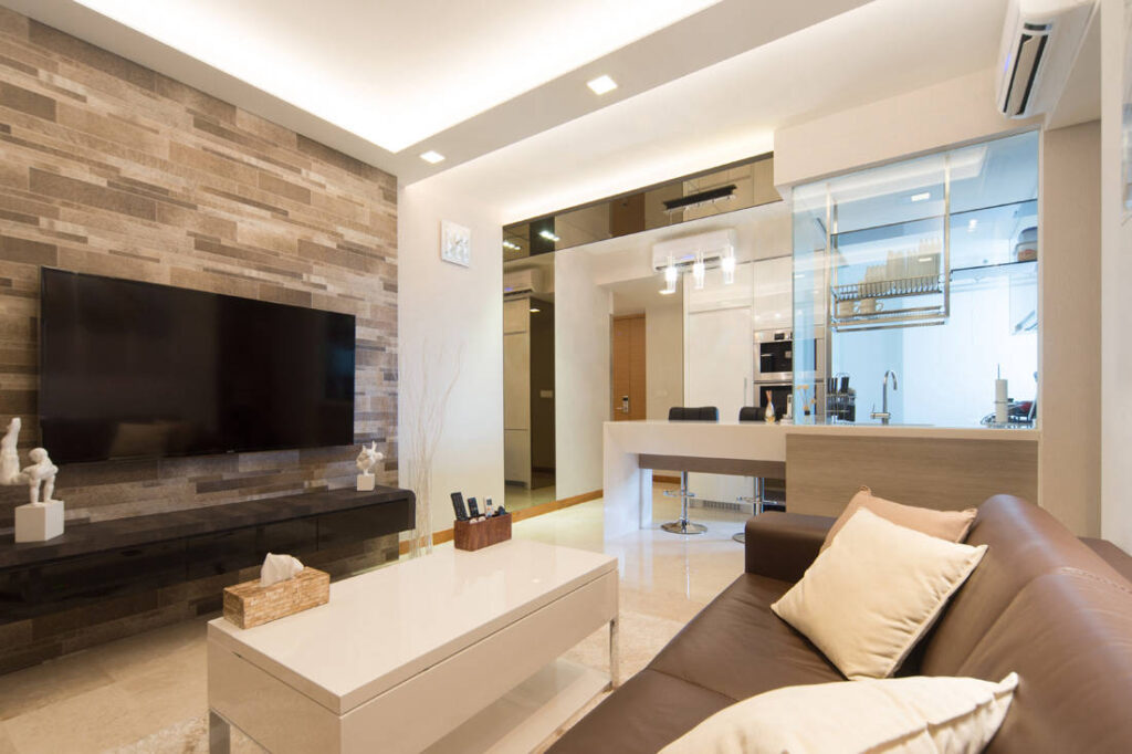 To make this 2-bedroom apartment a stylish and homely abode for a young couple, the design team from I.D.I.D incorporated soothing shades of cream, taupe and other neutral colours, as well as luxurious looking materials. The result is an elegant and timeless style that reflects the homeowners’ personality, without compromising on practicality.