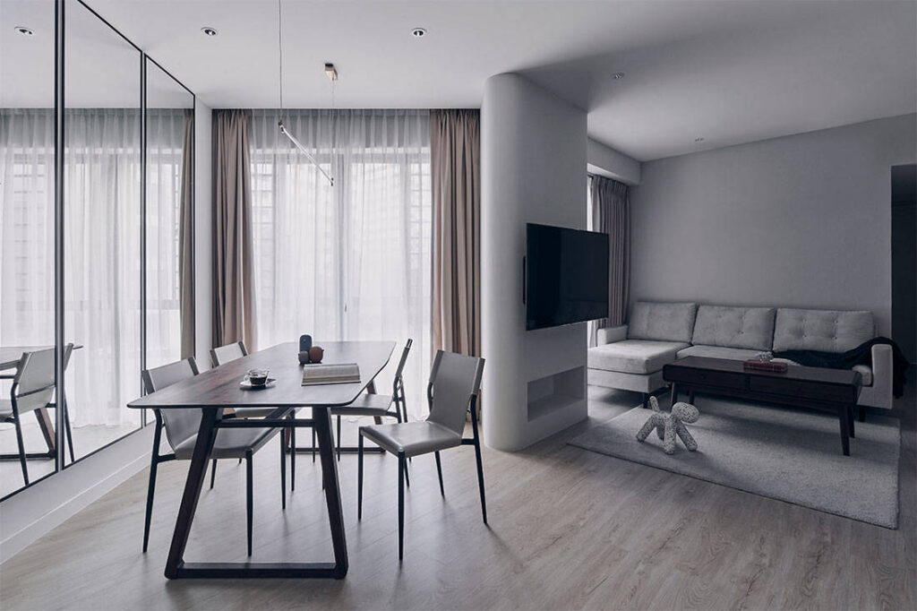 Creating a comfortable family home for three out of a 980-square-foot apartment might appear like a rather tall order, especially if one factors in an odd-shaped layout. But that’s precisely what designers Choo Yih and Wei Lu from Happe Design Atelier have given their clients.