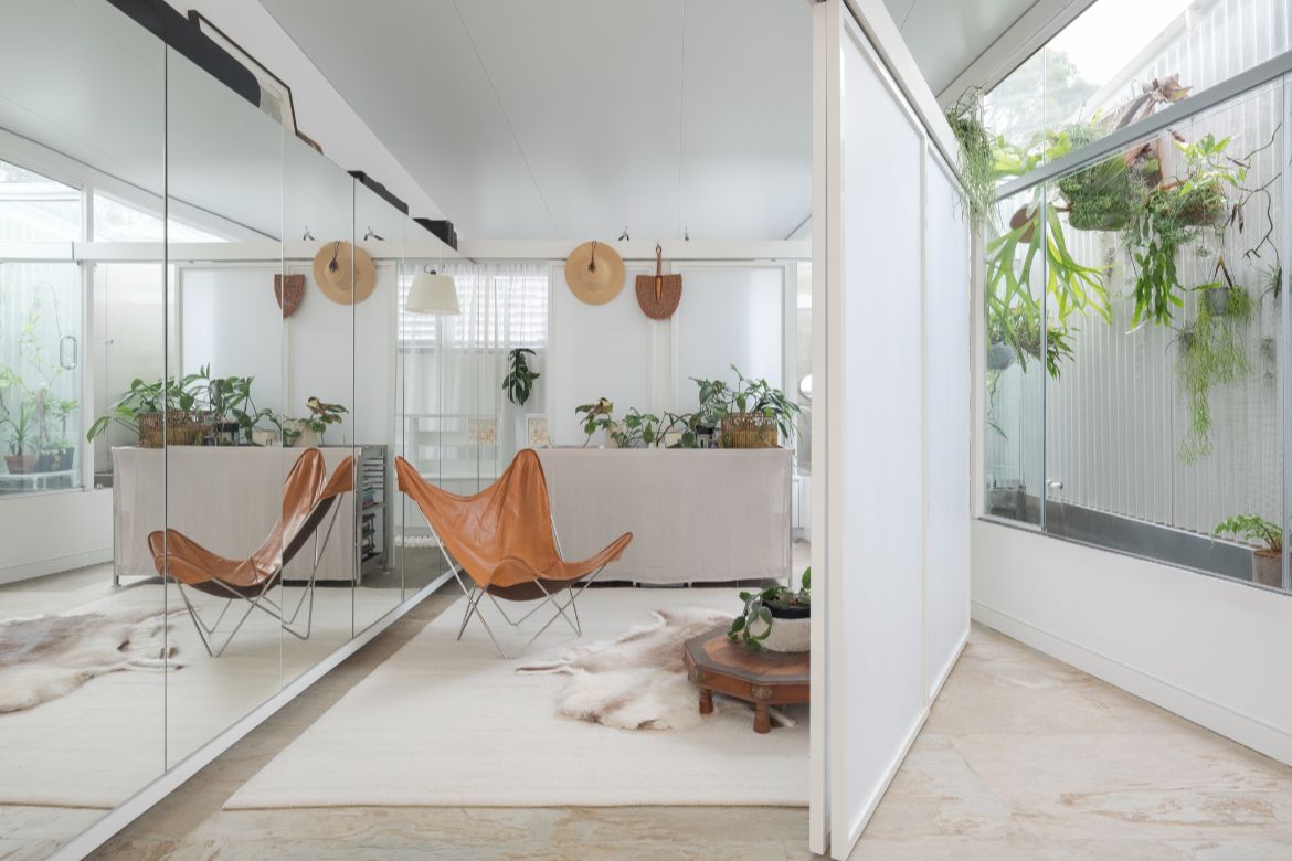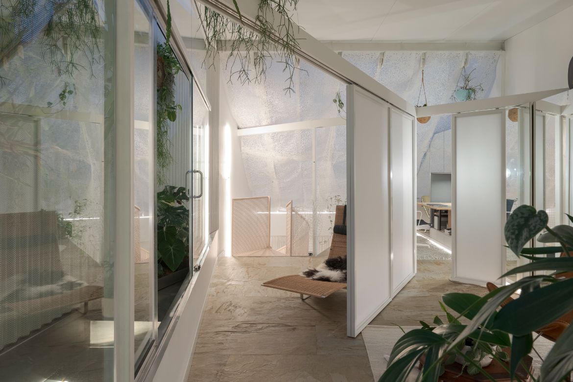 The use of angled walls is a counterintuitive device that leverages perception, as Shih explains, “Size is perceptual. You can make a space feel bigger by not fully revealing it. With diagonals I can play with perspective and vanishing points to reveal a sliver of nature.” In doing so, these pockets of nature suggest something much larger, but also allow nature to be seen from the many different nooks and corners created by the diagonal walls and an extensive use of mirrors. Moreover, the internal walls on this floor are lighting panels that can be slid to different positions on the wall line. “I realised I like playing around with my layouts, just freshening things up,” says Shih.