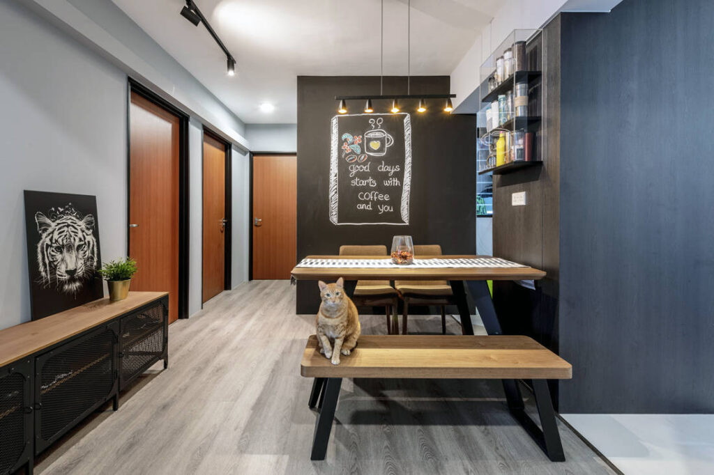 With more and more homeowners opting for bright, white interiors, it certainly is a breath of fresh air when the owners of this flat requested for a dark and cosy interior. “Many have the misconception that dark colours make a space feel smaller, while light colours enlarge a space visually; but that’s not always the case,” says Siow Bee Wee from Metier Planner, who was the design lead for this project.