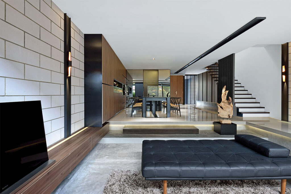 Metaphor Studio introduced passive cooling to replace air-conditioning, which the owners were habituated to using in their previous home. Timber louvred screens crafted from salvaged staircase treads and risers from the owner’s parents’ old house, were installed at the rear to promote natural ventilation.