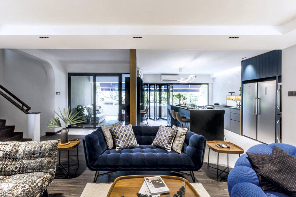 The owners of this apartment are a young couple who love to host their friends and family. Other than incorporating shades of blue, the home also had to feel open and welcoming. Hall rejigged the existing layout to bring in as much natural light as possible while creating the best spatial flow. All these were the groundwork to create a perfect stage for the furniture selection, which was curated by both the owners and designers.