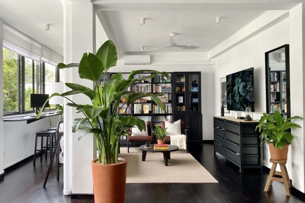 “The owner wanted something evergreen while ensuring that the entire home feels homely,” says Jovin. Complementing the lush greenery outside this Tiong Bahru unit, large planters decorate the entire home, creating a calming effect throughout.
