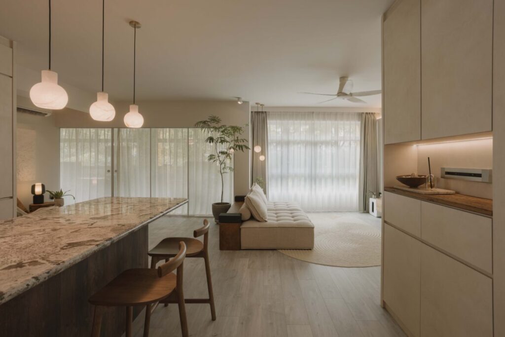 What is wabi-sabi? A traditional Japanese aesthetic that is believed to have developed around the 15th century in Japan due to its links with Zen Buddhism and Shintoism, wabi-sabi has nowadays transpired as the ‘Japanese take’ on minimalist design. However, the essence of wabi-sabi is more about embracing the imperfect beauty and evanescence. And when used in interior design, it goes beyond just choosing the simplest and purest of forms, shapes and materials. Thanks to The Interior Lab, this apartment in Joo Seng Road shows us how it is done.