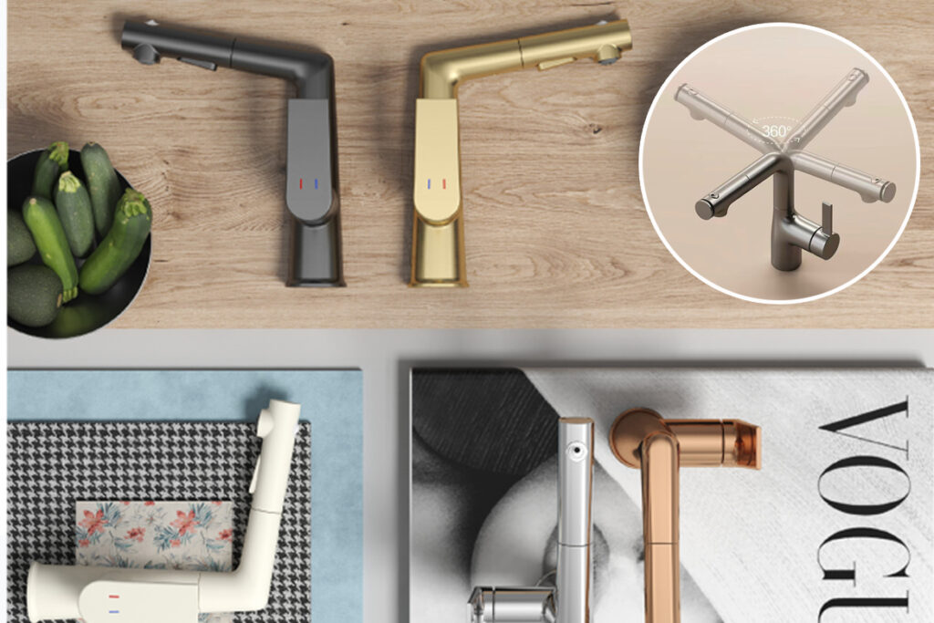 Top image: CELYNNE Series Rotary Lifting Pull-out Basin Mixer