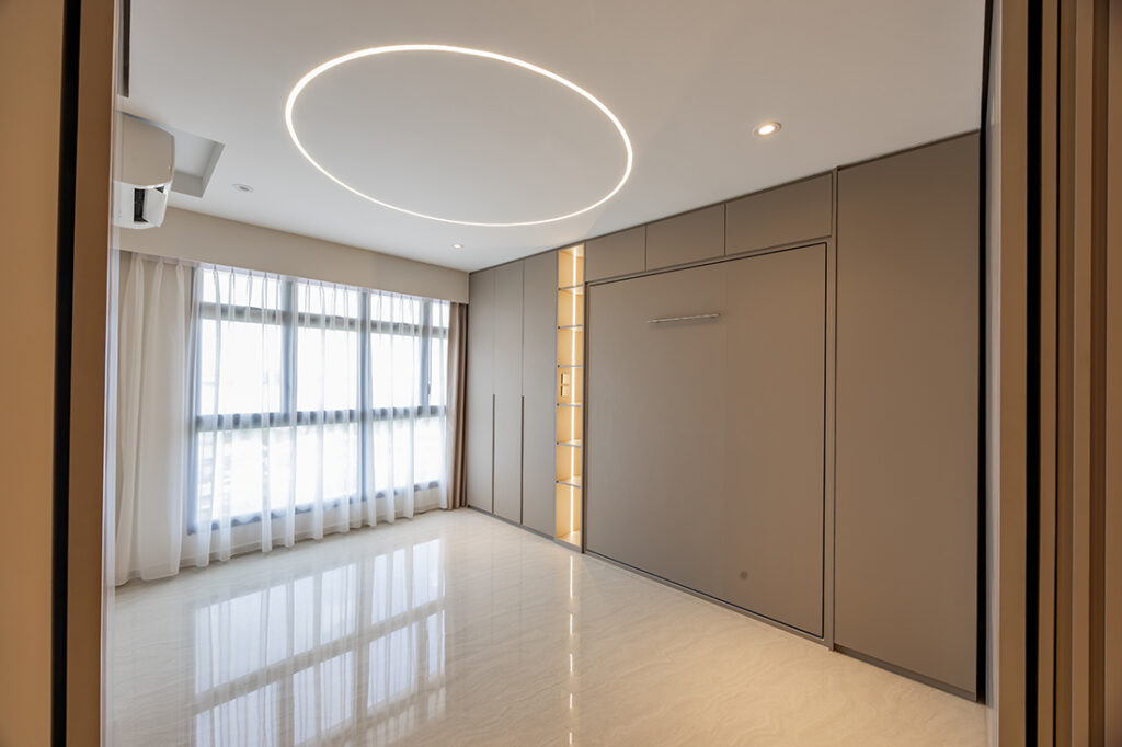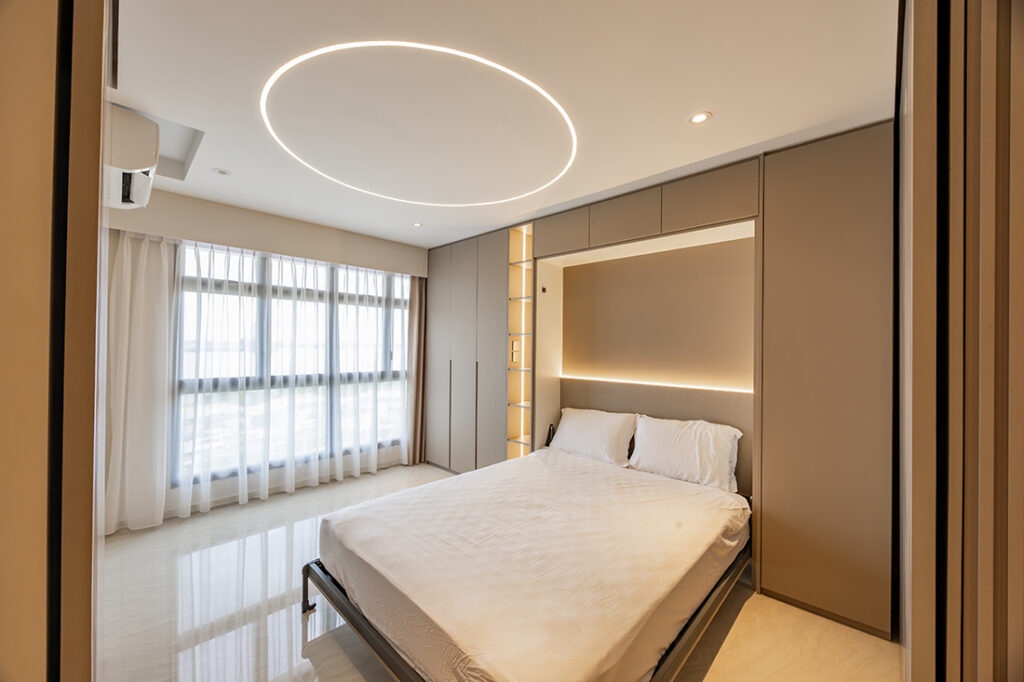 When a young couple started planning for their four-room BTO in Punggol—and learned a baby was on the way during the design process—Wynn Neo of I.D.I.D recalibrated the plan for real family life without losing the boutique-hotel vibe the owners wanted. Clean frameless doors and a single flooring finish create a calm and seamless backdrop, enhanced by soft neutral tones and marble patterns.